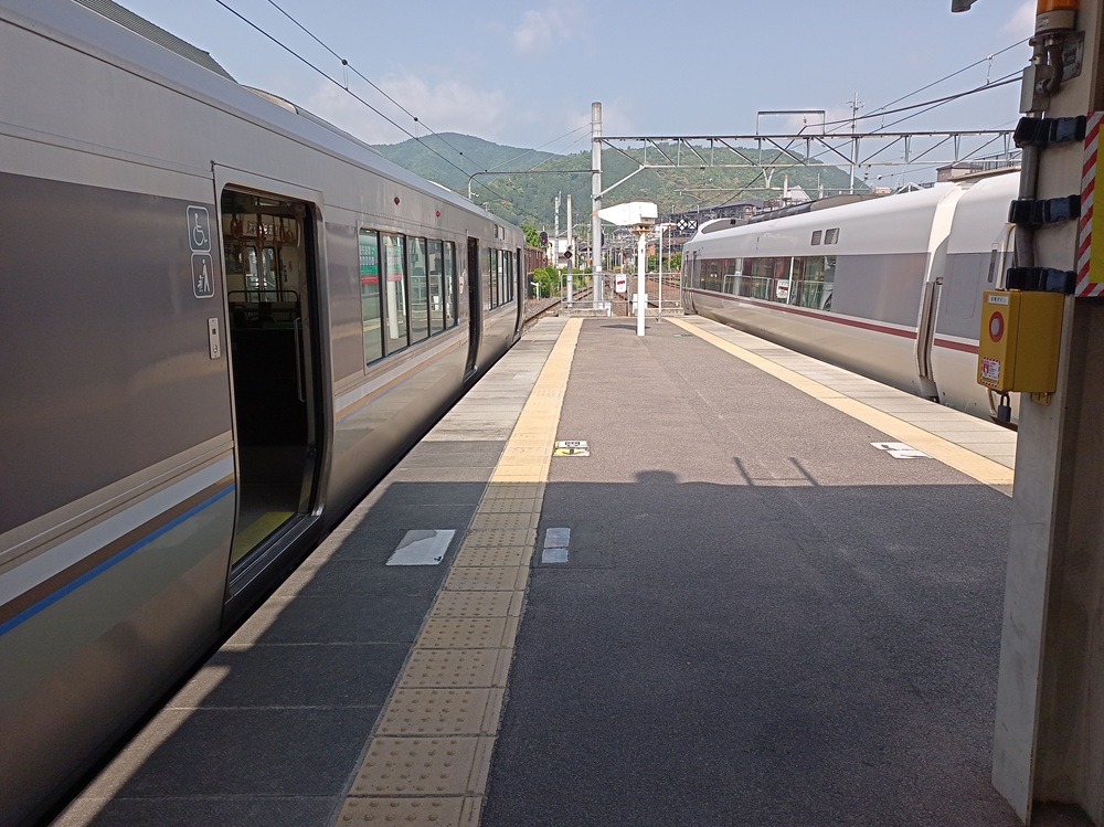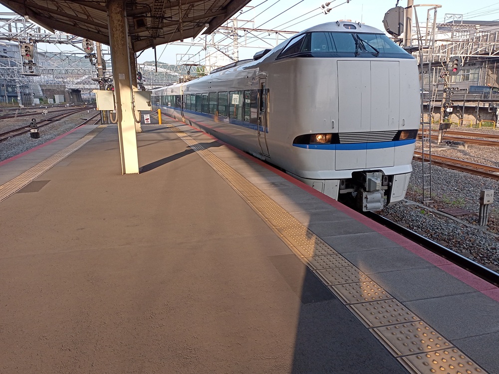 Bild 9-1: Thunderbird 5, ein 9-Wagen-Zug der Baureihe 683, steht zur Abfahrt in Richtung Tsuruga bereit.