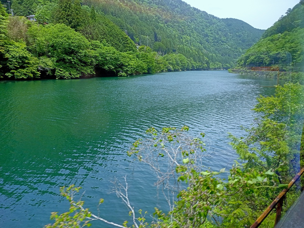 Die Strecke ist sehr sehenswert und bietet immer wieder neue Ausblicke auf den Fluss und die Landschaft. Vergleichbar zum Limited Express Nanki an Tag 7 werden auch im Limited Express Hida an manchen Stellen Informationen zur Strecke in Japanisch und Englisch per Lautsprecher bekannt gegeben. Nur besonders schnell verläuft die Fahrt hier nicht. Auf der eingleisigen Strecke sind mehrere planmäßige Betriebshalte für Zugkreuzungen vorgesehen. Die lange Eingleisigkeit führt zudem bei manchen Zügen zu kleineren Verspätungen bis ca. 5 Minuten, die sich anschließend auf die Gegenrichtung übertragen. Zum Glück haben die Trassenplaner das auf der Takayama Main Line offenbar bedacht und Pufferzeiten eingeplant, da sich die Verspätungen im Tagesverlauf nicht ungedämpft gegenseitig hochschaukeln.
