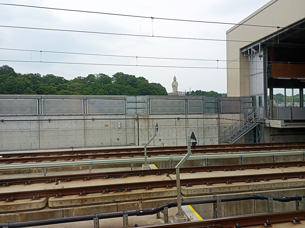 Die Portram ist ein „Tram-Train“-System. Züge nutzen auf den ersten anderthalb Kilometern eine eingleisige Straßenbahnstrecke in Toyama, die den Hauptbahnhof an die Trasse der Toyamakō Line, eine frühere Eisenbahnstrecke der JR West, anbindet. Die Eisenbahn verbindet anschließend auf rund 7 Kilometern Strecke die Innenstadt von Toyama mit dem Hafen und dem Strand an der Küste zum japanischen Meer am Endbahnhof Iwasehama. 2006 hat die Toyama Chihō Railway, ein Unternehmen des öffentlich-privaten Sektors, den Betrieb von JR West übernommen und die Strecke zur Stadtbahn ausgebaut. Seitdem haben sich die unter JR West rückläufigen Fahrgastzahlen auf dem zuvor für den Stadtbahnbetrieb erwarteten Niveau stabilisiert. Auch wenn ein Ausflug mit der Portram zum Strand interessant gewesen wäre – in Anbetracht der Wetterprognose entscheiden wir uns dagegen und fahren mit dem nächsten Shinkansen zurück in Richtung Ōsaka, denn es ist schwül-heiß und die angespannte Luft soll sich laut Vorhersage in Kürze entladen…