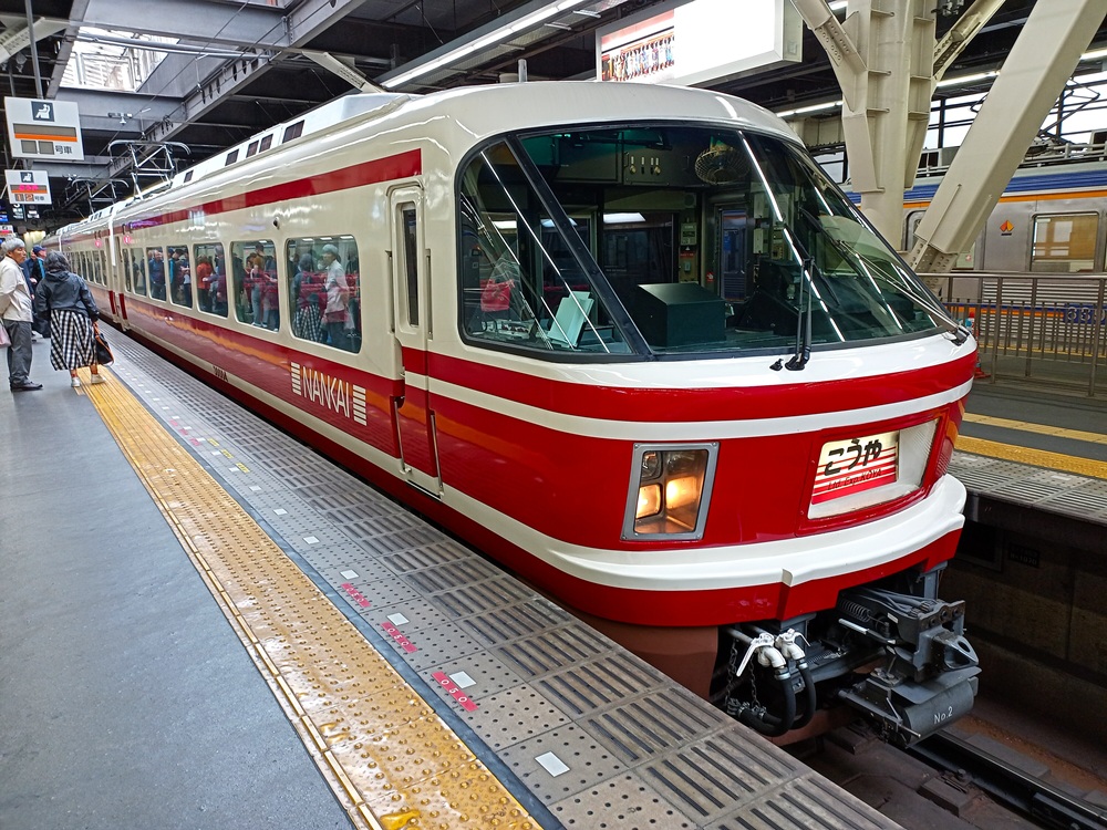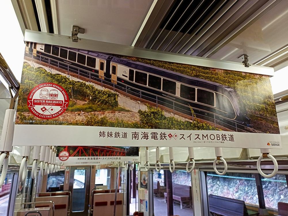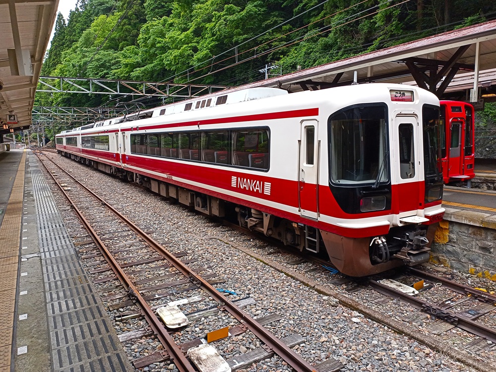 Der Kōya befährt die Nankai Kōya Line auf ganzer Strecke von Namba bis Endbahnhof Gokurakubashi. Die Kōya Line verläuft auf den ersten Kilometern parallel bzw. nahe zur Nankai Main Line und zweigt ab dem Vorort Sakai in den Südosten des Großraums Ōsaka ab. Durch den Kimi-Tunnel quert der Zug den Kimitōge-Pass und damit den Gebirgszug, der die Metropolregion Ōsaka vom Tal des Kinokawa trennt. Der Kinokawa fließt, wie an Tag 7 bereits angesprochen, entlang einer tektonischen Verwerfung, welche die Kii-Halbinsel aus dem Weltraum gut sichtbar in Nord und Süd teilt. Die Kōya Line steigt nach dem Bahnhof Kimitōge in das Flusstal ab und erreicht dort den Umsteigebahnhof Hashimoto, an dem Fahrgäste zur Wakayama Line der JR West wechseln können.