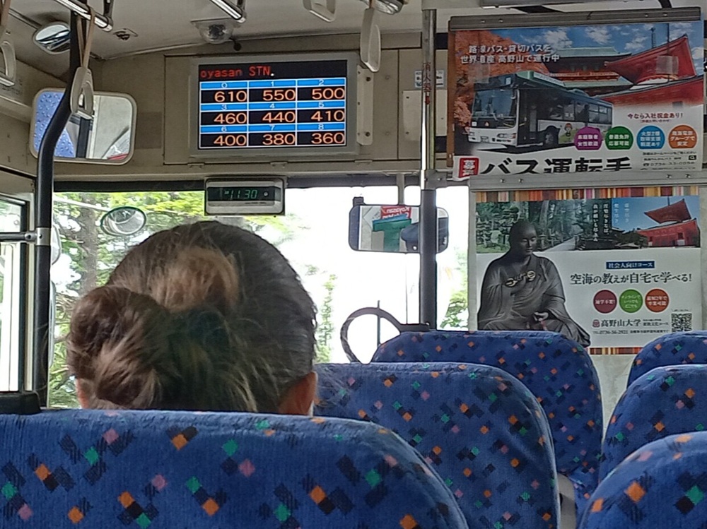 Zur Weiterreise nutzen wir, auch in Ermangelung sinnvoller Alternativen, die selbe Reisekette, die uns bereits hierher geführt hat, beginnend mit einer Busfahrt zum Bahnhof Kōyasan.