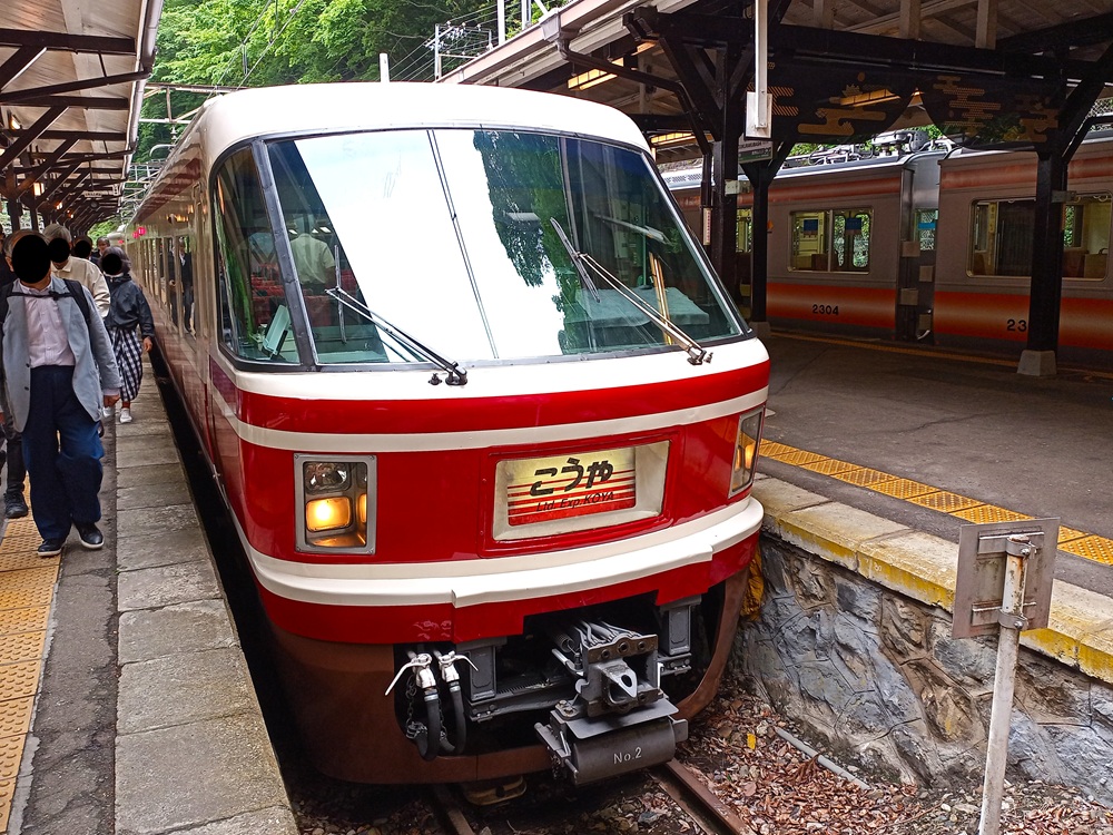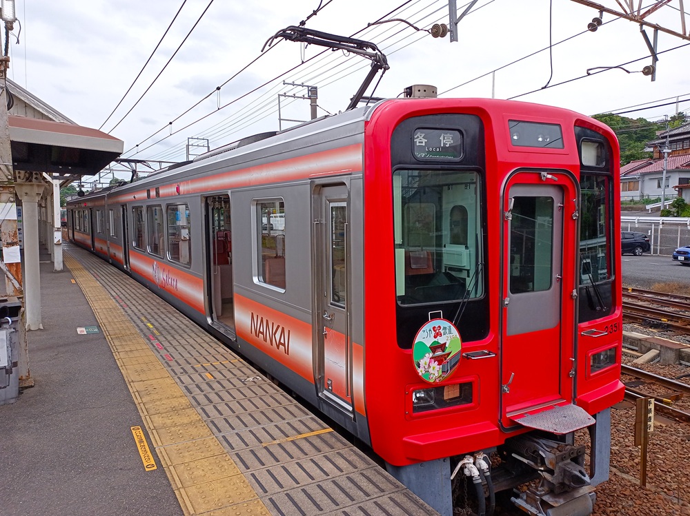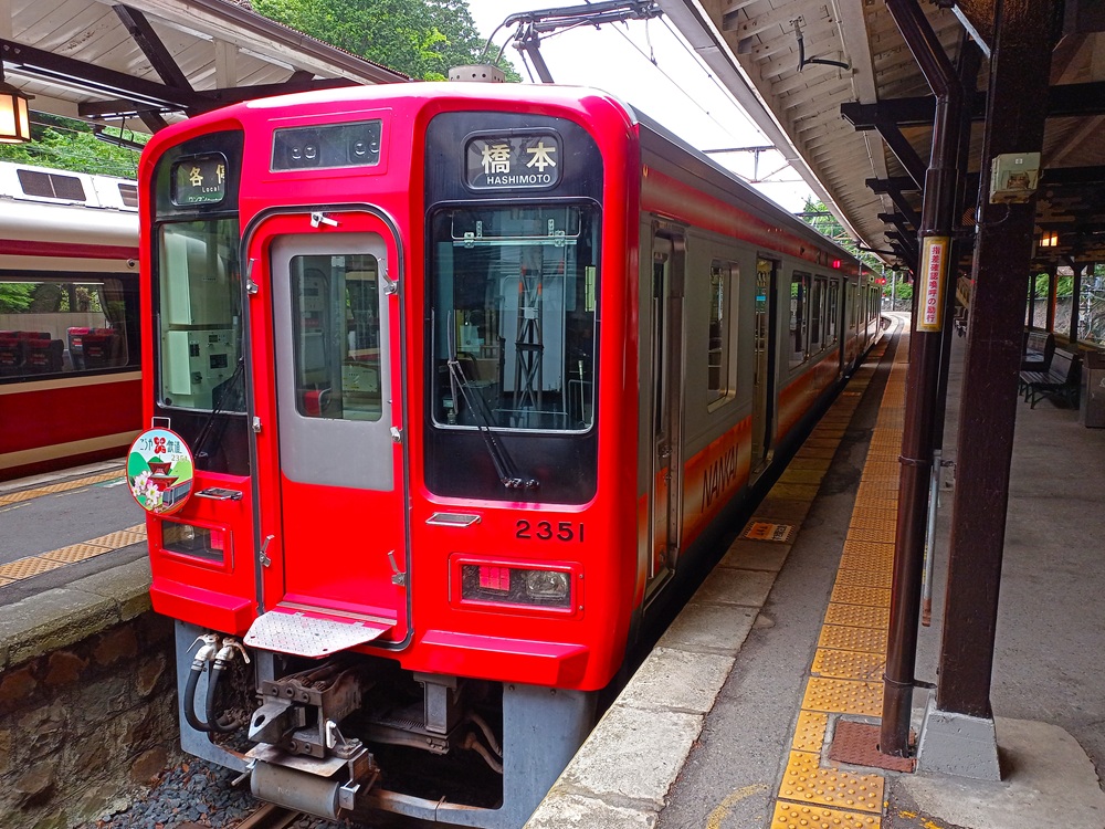 Der Zweiteiler der Baureihe 2300 fährt nur auf dem Abschnitt der Bergstrecke von Gokurakubashi hinunter zum Umsteigebahnhof Hashimoto. Über die gesamte Fahrt bleibt der Local recht leer. Als Grundangebot auf der Bergstrecke bedient der Zug aber im Gegensatz zum Limited Express noch einige Stationen unterwegs, die teils (ebenso wie Gokurakubashi) recht entlegen im Wald liegen.
