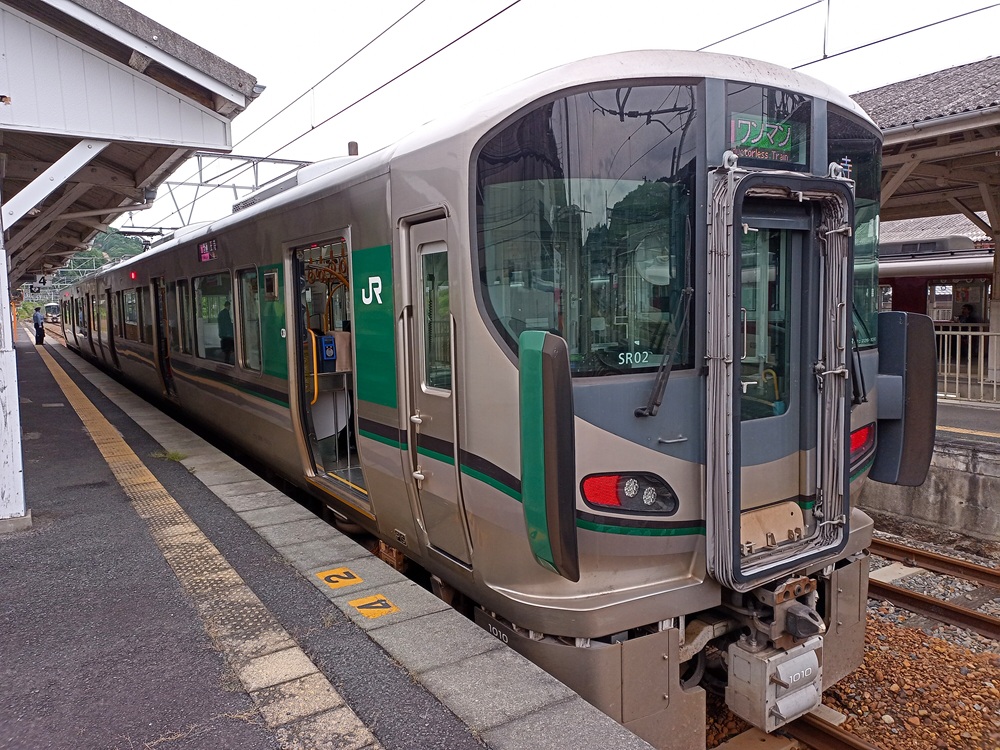 Die Züge der Wakayama Line verkehren zwischen Wakayama und Takada tagsüber im Stundentakt. Die Fahrt über die 88 km lange Gesamtstrecke von Wakayama über Hashimoto, Gojō und Takada nach Ōji dauert wegen mehrerer planmäßiger Standzeiten rund 2,5 Stunden. Unser Zug erreicht Hashimoto um 12:57, fährt allerdings erst um 13:07 weiter. Nach 3 Zwischenhalten kommt der Local um 13:21 im 10 km entfernten Gojō an und warten dort bis 13:30 auf die Kreuzung mit dem Gegenzug. Wiederum 10 km und einen Zwischenhalt später erreichen wir um 13:42 den Bahnhof Yoshinoguchi und verlassen den Zug zum Umstieg auf die Privatbahn Kintetsu. Eilig hat es der JR-Zug aber auch dort nicht, denn erst um 13:50 geht die Fahrt Richtung Ōji nach der nächsten Zugkreuzung weiter. Zwischen 13:00 und 14:00 schafft es der Local so auf gerade einmal 28 km, obwohl die Nebenbahn eigentlich gut ausgebaut ist und viele Kreuzungsmöglichkeiten bietet.