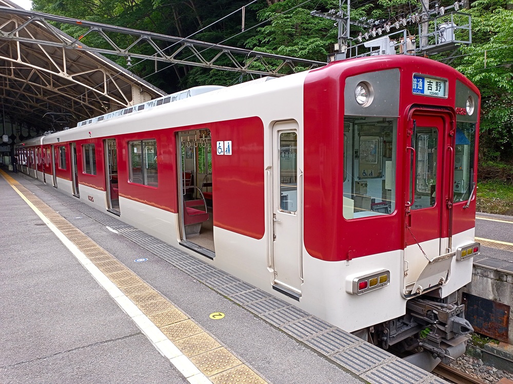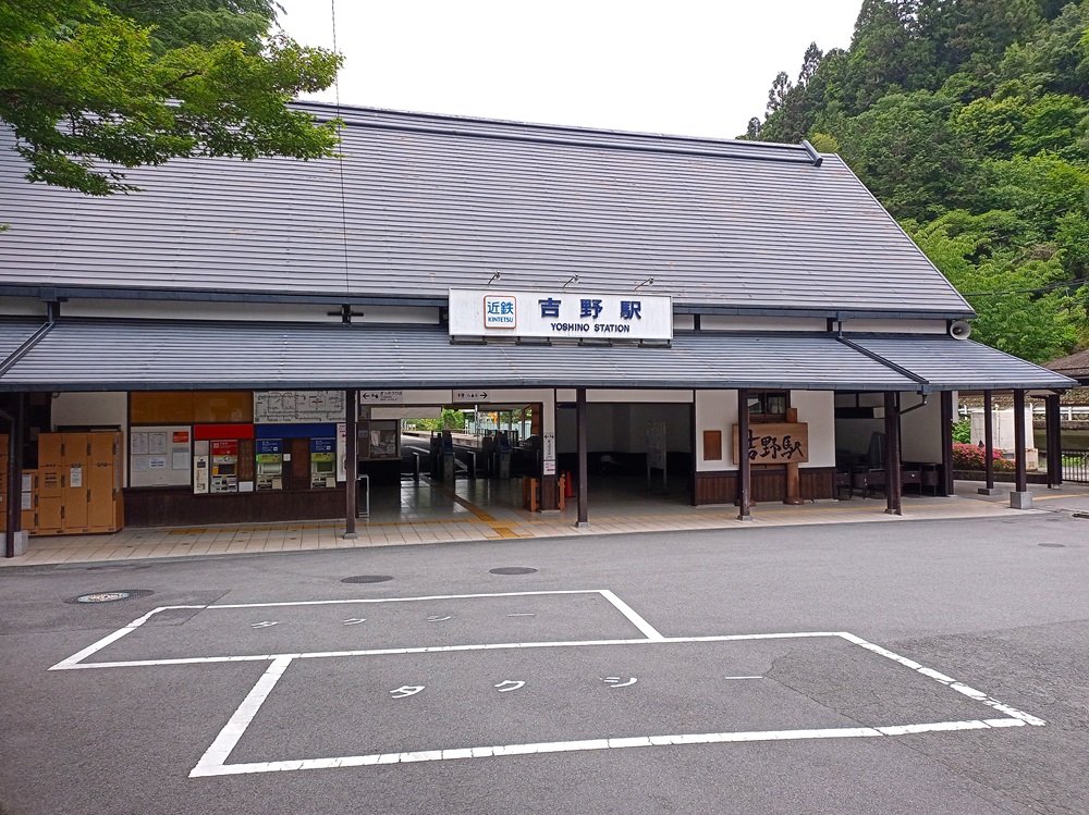 Der Ort Yoshino liegt am Fuße des Yoshinoyama (Mount Yoshino), der eigentlich keinen einzigen Gipfel, sondern eine kleine Bergregion bezeichnet. Bekannt ist der Ort für seine vielen Kirschbäume. Beim Aufstieg ins Gebirge sollen Beobachter einer Legende nach auf 4 Abschnitten insgesamt mindestens 4.000 von ihnen erspähen können. In der Blütezeit der Kirschblüte („sakura“) Ende März bzw. Anfang April zählt Yoshino daher zu einem der beliebtesten Ausflugsziele für „hanami“. Unter diesem Begriff verstehen Japaner das (gemeinsame) Betrachten von Blüten zu Erholungszwecken, wobei die Kirschblüte wohl zu den eindrucksvollsten gehört. Während der Blütezeit finden sich viele Menschen mit der Familie oder im Freundes- bzw. Kollegenkreis zusammen, um die Schönheit der in voller Blüte stehenden Bäume zu genießen. Yoshino als Ort der tausenden Kirschblütenbäume erlebt in dieser recht kurzen Jahreszeit einen regelrechten Ansturm von Touristen. Kintetsu setzt dann Sonderzüge ein, um das Reisendenaufkommen bewältigen zu können. Ganz anders verhält es sich in Yoshino außerhalb der Kirschblütensaison, aber das sehen wir gleich 😉