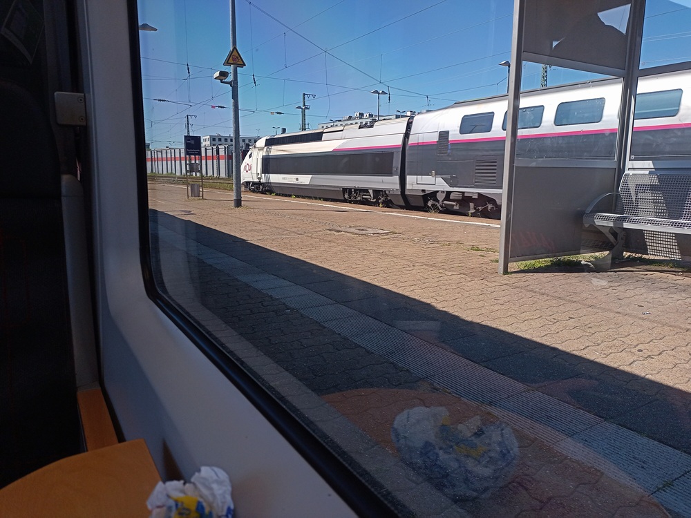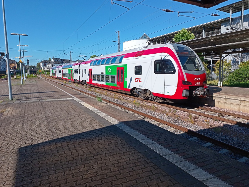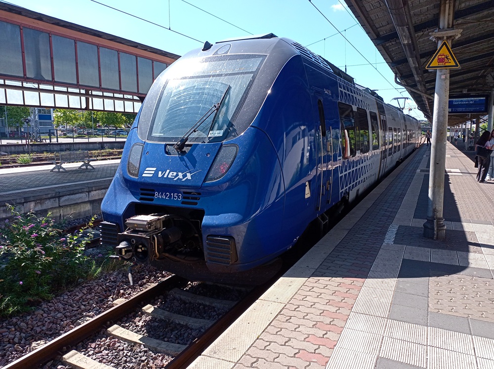 Der RE ist zwar deutlich voller als die RB, dafür geht die Fahrt nun aber etwas schneller voran. Um 13:14 erreichen wir unser nächstes Zwischenziel Völklingen. Für den Zug bedeutet das eine Verspätung von 43 Minuten – wir sind jedoch zwei Minuten früher als geplant am (Zwischen-)Ziel 😉