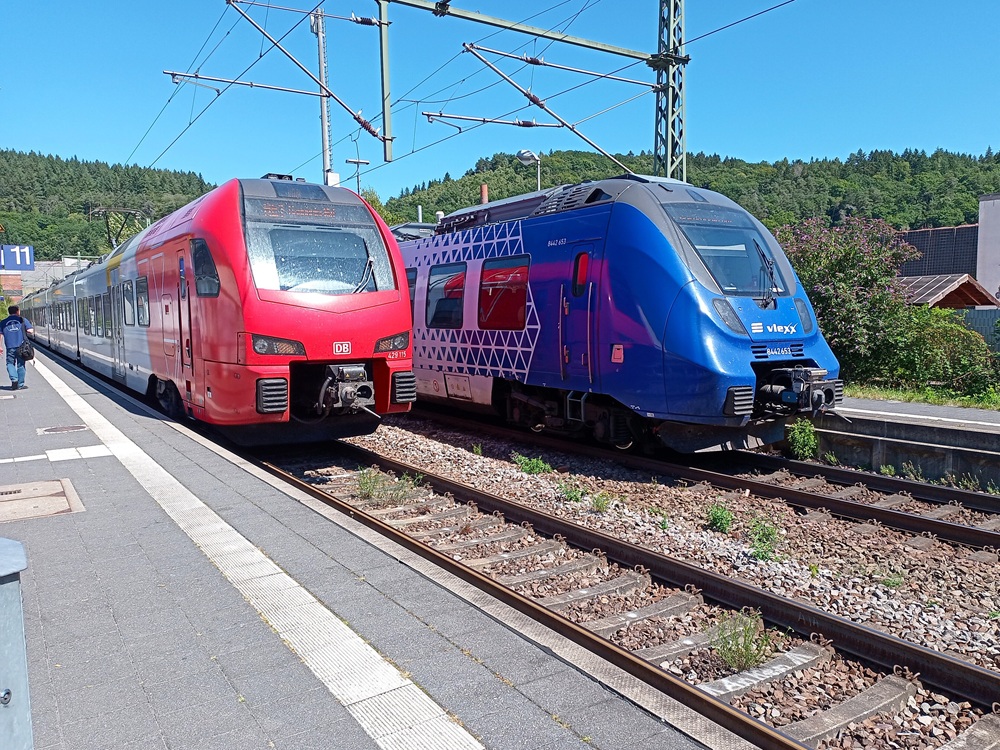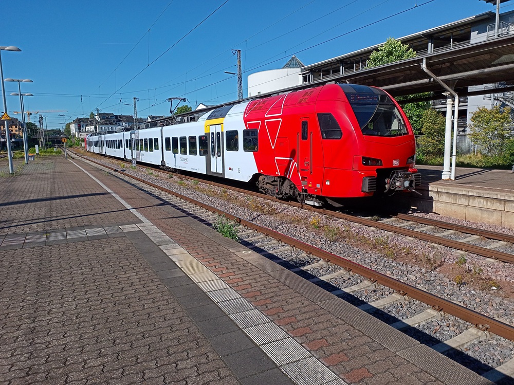 Zwischen Koblenz und Trier werden die Linien RE 1 und RE 11 gemeinsam geführt. Der FLIRT fährt ab Trier als RE 1 weiter über Saarbrücken und Kaiserslautern nach Mannheim; der KISS als RE 11 nach Luxembourg.