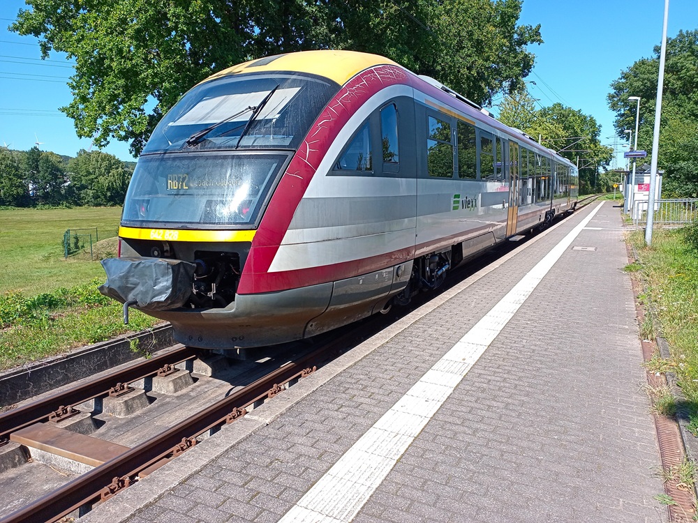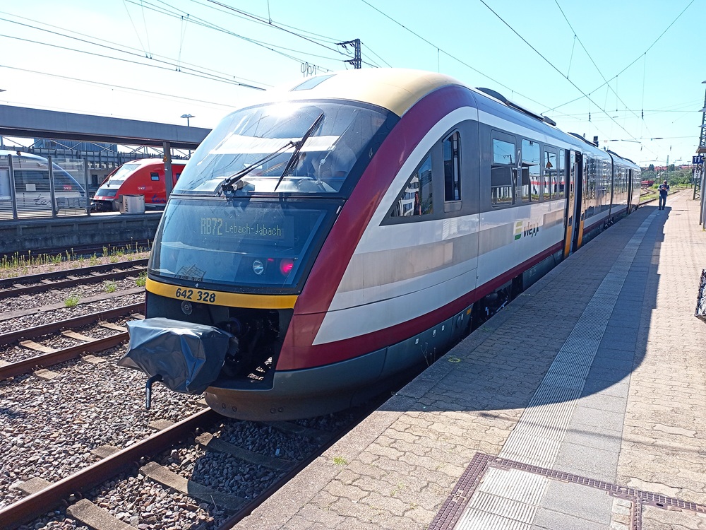 Die Linie RB 72 macht zwischen Saarbrücken und Lebach einen leichten Bogen über Quierschied, Illingen und Eppelborn. Die Saarbahn verkehrt dagegen auf direktem Weg zwischen Saarbrücken und Lebach, sodass wir später mit der Stadtbahn in die Landeshauptstadt zurückkehren werden. Leider verzögert sich die Abfahrt in Saarbrücken ein wenig, da…
