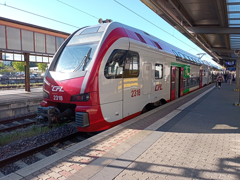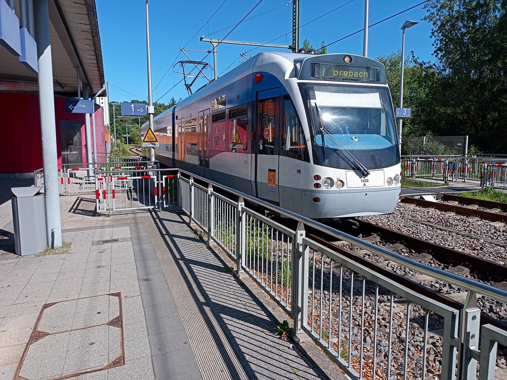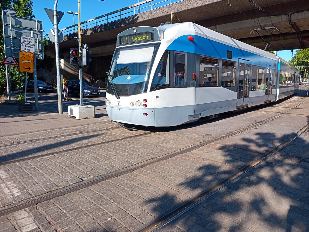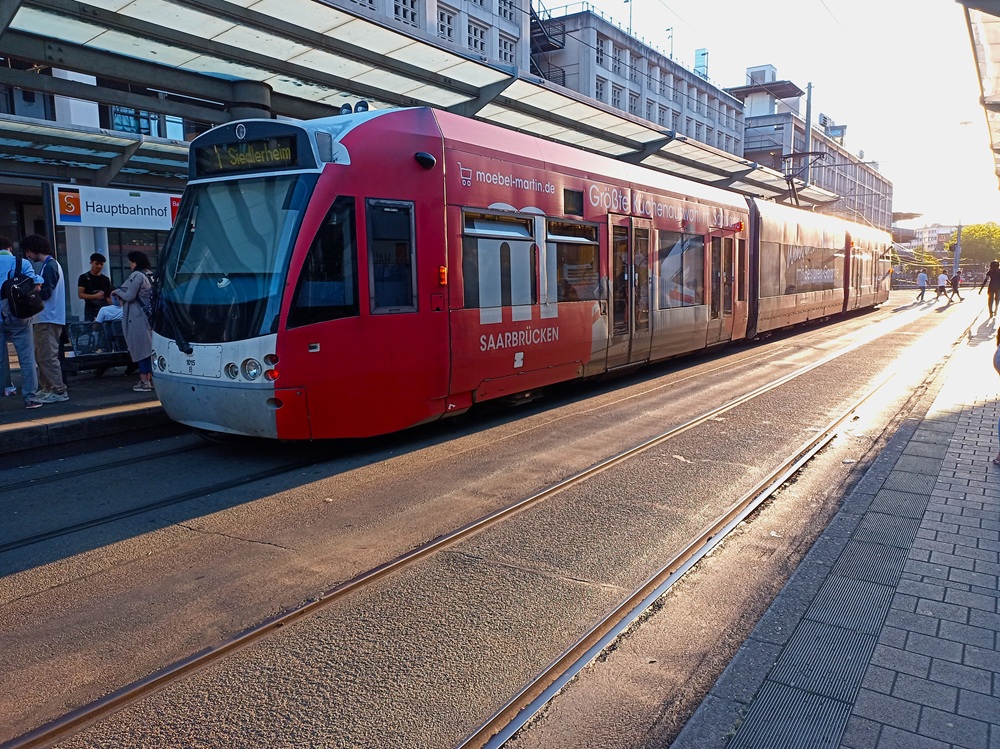 Jetzt ist es aber endlich Zeit, das Gepäck ins Hotel zu bringen, denn der Zug aus Lebach fährt ohnehin nicht bis zum Ende der einzigen Saarbahn-Bahnlinie 1 durch.